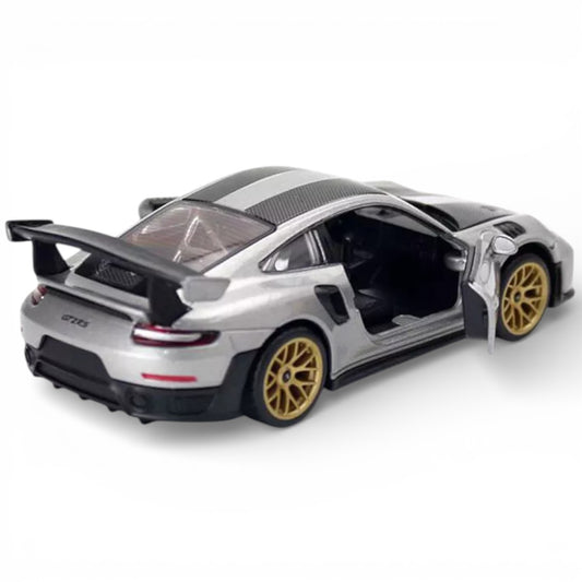 MSZ 1:32 Porsche 911 GT2 RS Die-Cast Model Car – Grey | Pull Back, Openable Doors, Light & Sound (68705)