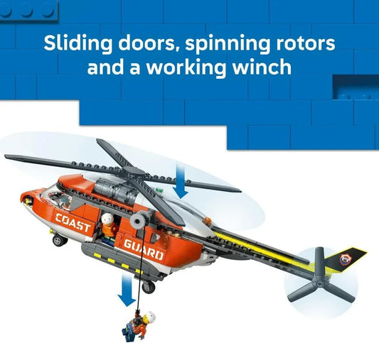 LEGO City - 60503 Coast Guard Helicopter Toy - Emergency Vehicle Model Kit w/Sliding Doors, Winch, 4 Minifigures & Shark Figure - Birthday Gift for 7+ Year Old Boys