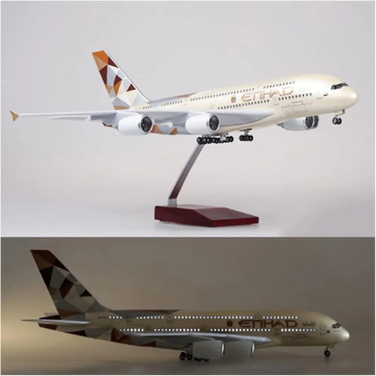 Etihad Airlines Airbus A380 LED Lit - Airplane 1/160 Plane Model Replica Toy Decor - 46 cm