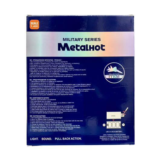 MetalHot Diecast Fighter Airplane Pull-Back Action with Light & Sound - 1:400 Scale (Blue)