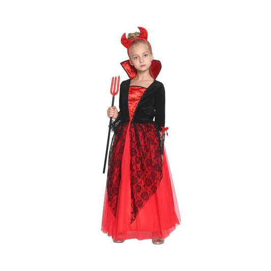 Girls’ Red Devil Halloween Costume with Horns & Trident – Kids Fancy Dress