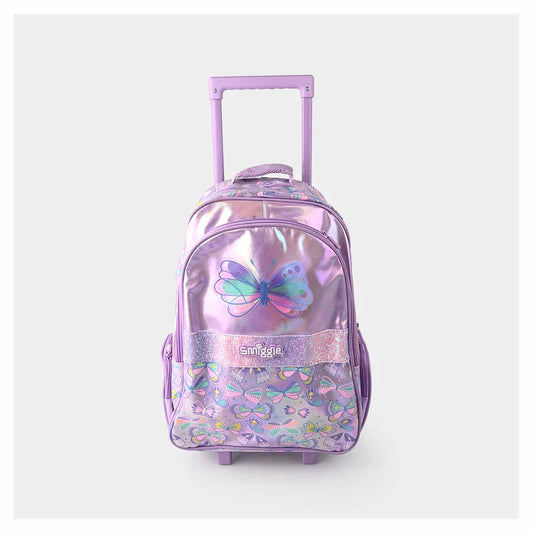Smiggle Butterfly 18-Inch Light-Up Trolley Backpack for Kids – Colorful Wheeled School Bag with Extendable Handle