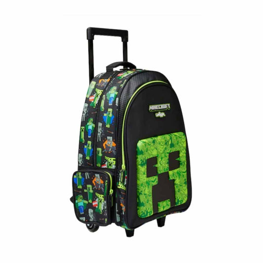 Smiggle Minecraft Creeper 18-Inch Trolley Backpack for Kids – Wheeled School Bag with Extendable Handle