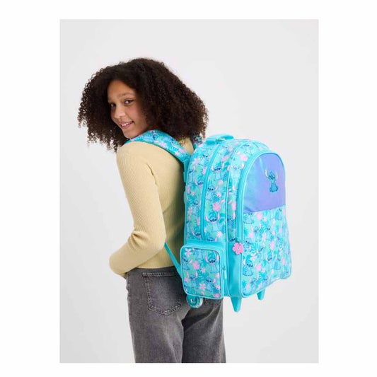 Smiggle Stitch 18-Inch Trolley Backpack for Kids – Colorful Disney Stitch School Bag with Light-Up Wheels & Extendable Handle