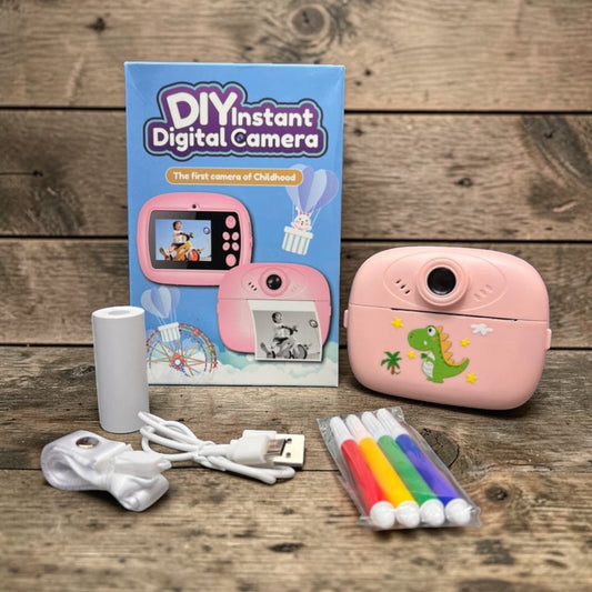 DIY Instant Print Camera for Kids – Thermal Ink-Free Printing Digital Camera with Paper Roll, Color Pens & USB Charging - 1 Pc