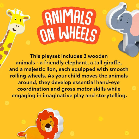 Skillmatics Wooden Animal Toys on Wheels, Imaginative Play for Toddlers, Educational Gifts for Infants 9 Months to 3 Years