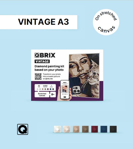 QBRIX A3 Vintage Diamond Painting Kit| 44,000 Crystals, 7-Color Mosaic | Stretched Canvas 14+