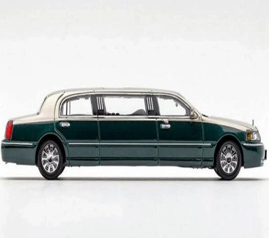 GCD 1:64 Scale Luxury 2003 Town Car Limousine 220 Diecast Model Car – Two Tone Green Gold Long Body Collectible