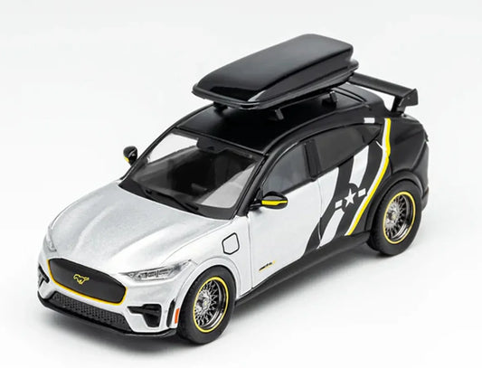 GCD Ford Mustang Mach-e GT SUV Diecast Model 1:64 Scale – Silver & Black Racing Livery Collector Car with Display Box