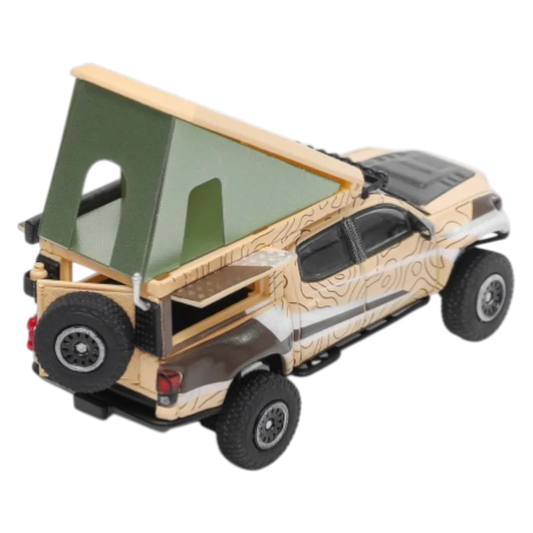 GCD 528 Toyota Tacoma Camper Desert Edition Diecast Model Car with Pop-Up Tent – Premium Collectible Pickup Truck Miniature