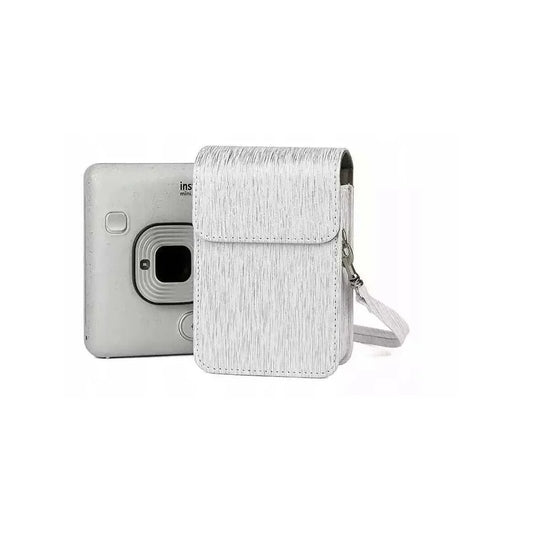 Protective PU Leather Case for Fujifilm Instax Mini LiPlay – Compact Camera Bag with Shoulder Strap-Silver