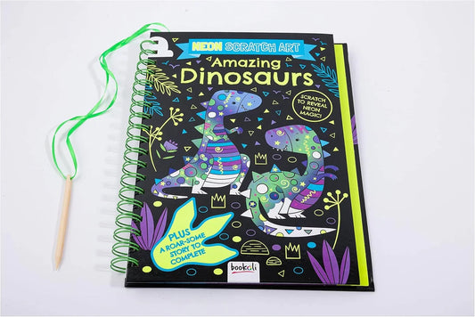 Dinosaur Scratch Art Activity Book for Kids – Scratch Pages, Colouring Sheets, Stylus & Bonus Story