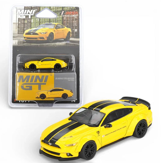 Mini GT 1:64 LB-WORKS Ford Mustang Triple Yellow MGT01077-BL+ – Liberty Walk Widebody Diecast Model Car (Blister Pack)
