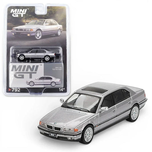 Mini GT 1:64 Blister Pack BMW 750iL Aspen Silver Metallic Diecast Luxury Sedan Model Car