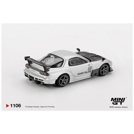 Mini GT 1:64 Mazda RX-7 RE-Amemiya Silver Metallic Diecast Model Car – MGT01106-BL