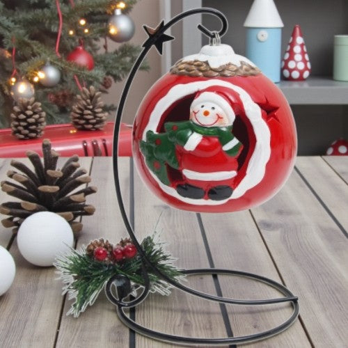 Hanging Santa Christmas Ornament with Metal Stand – Festive Bauble Décor with Pinecone & Berries | Tabletop Christmas Decoration - 1 Piece