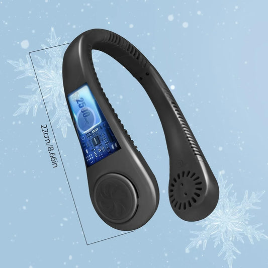 Portable Neck Fan, Personal Fan USB Rechargeable Neck Fan, 5 Speed Hanging Bladeless Fan with Monitor (Black)