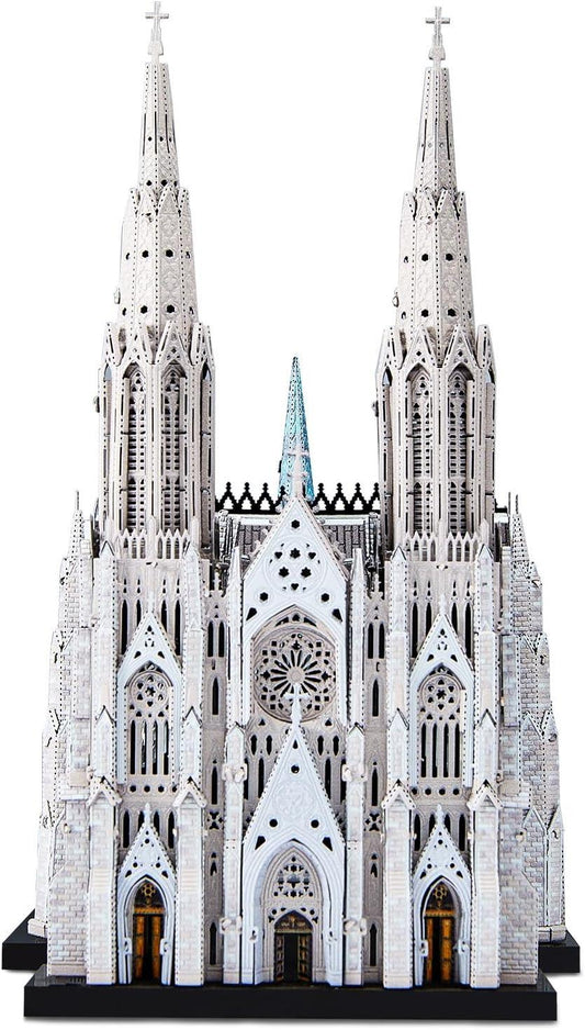 Piececool 3D Metal Puzzle St. Patrick’s Cathedral Architecture Model – 418 Pieces – 6 Metal Sheets – Stainless Steel DIY Model Kit-Age 16+