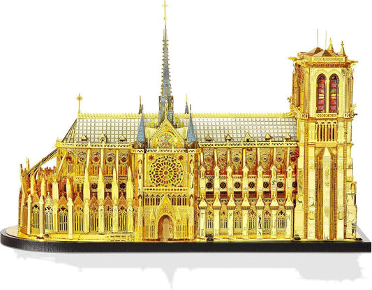 Piececool 3D Metal Puzzle Notre-Dame de Paris (Large Gold Edition) – 384 Pieces – Level 5 Difficulty – Stainless Steel DIY Architecture Model-Age 14+