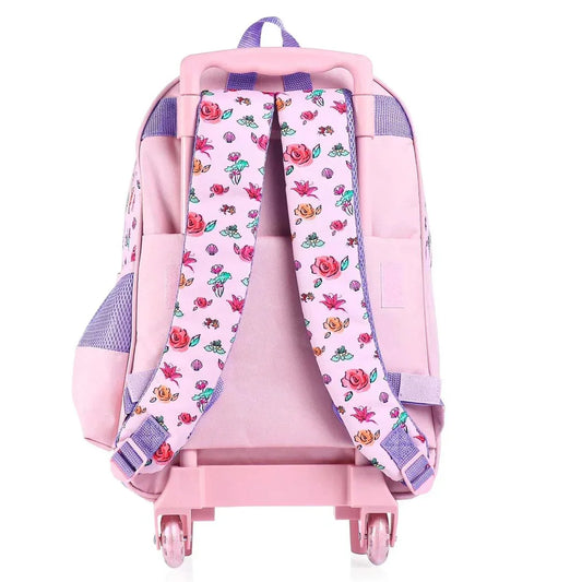 STRIDERS Barbie 18-Inch Trolley School Bag for Kids 9+ Durable Rolling Backpack for Girls Pink Cartoon School Bag