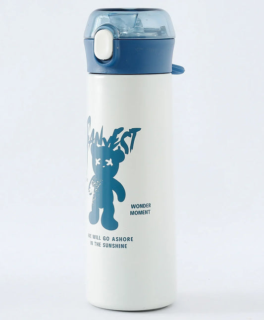 Happy Baby Bear Stainless Steel Water Bottle For Kids 600 ML (Blue)