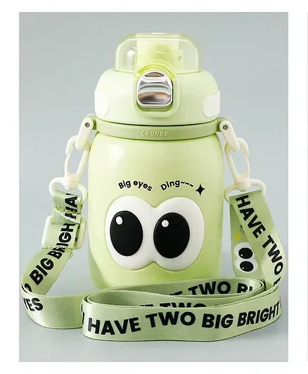 Cute Big Eyes Ding Insulation Cup Cartoon Portable Double Drinking Straw Cup 550 ML (Green)