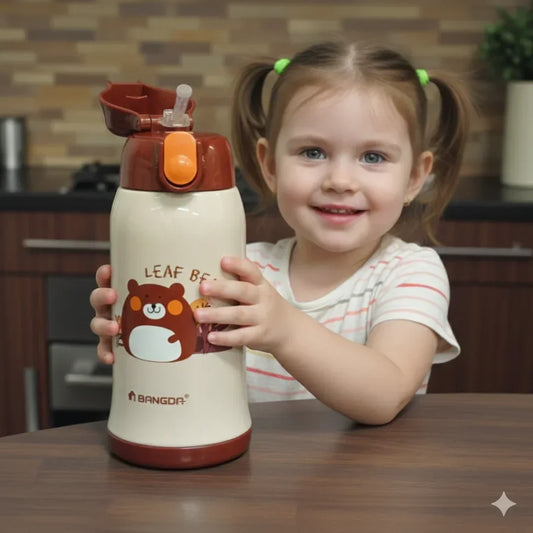 Bangda 560ml Stainless Steel Lecai Vacuum Children Water Bottle – Leaf Bear Theme