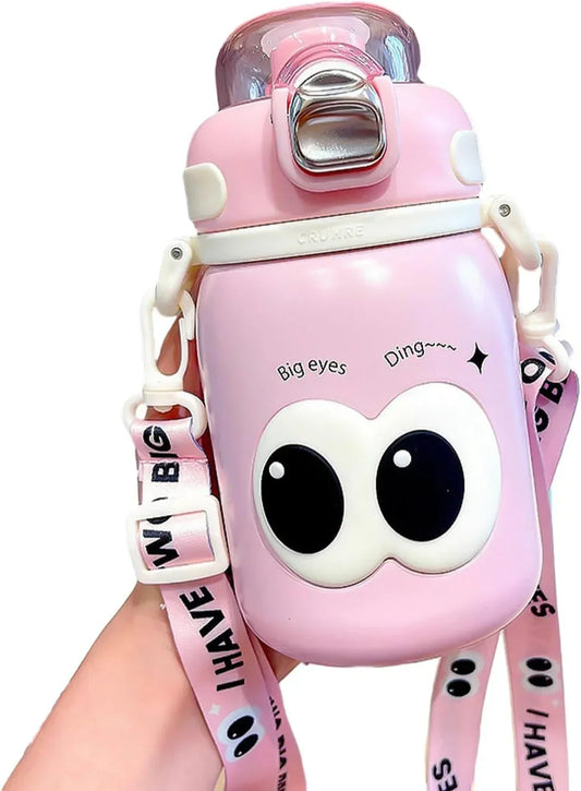 Cute Big Eyes Ding Insulation Cup Cartoon Portable Double Drinking Straw Cup 550 ML (Pink)