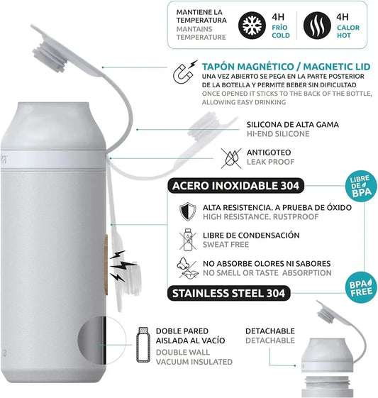 Vacuum Insulated Water Bottle with Straw, Leak-Proof Stainless Steel 14OZ | 410 ML (White)
