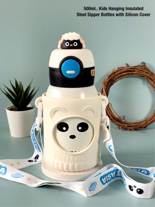 Cute Premium Kids Insulated Water Bottle Stainless with Silicon Cover 500 ML (White)