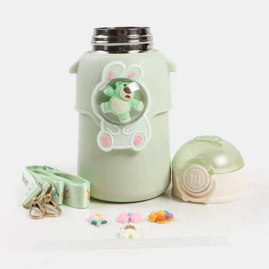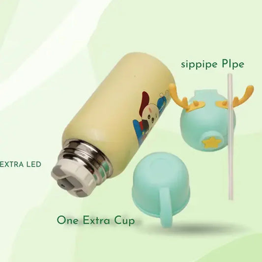 Deer Stainless Steel Water Bottle For Kids with carry bag, additional cup and sipper 500 ML (Green)