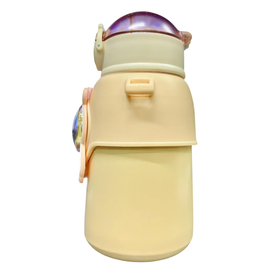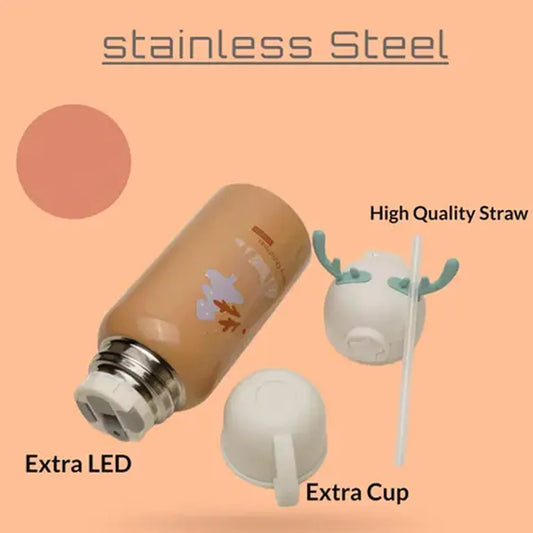 Deer Stainless Steel Water Bottle For Kids with carry bag, additional cup and sipper 500 ML (Beige)