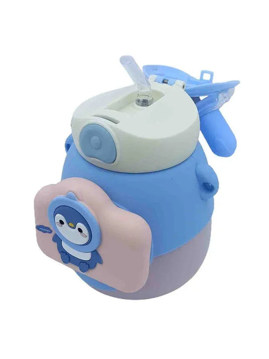 Lookoy Penguin Stainless Steel Water Bottle With Straw 550 ML (Blue)