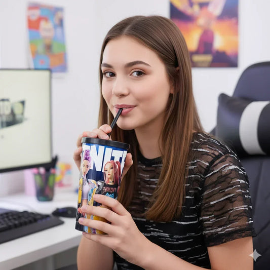 K-Pop Fortnite 700ml Stainless Steel Tumbler Sipper Water Bottle With Straw | Leak-Resistant Travel Cup
