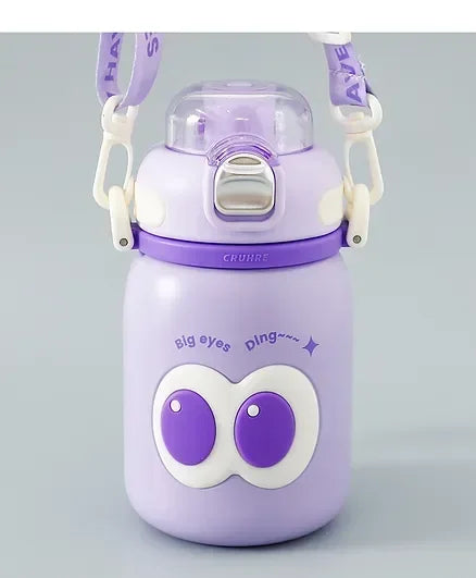 Cute Big Eyes Ding Insulation Cup Cartoon Portable Double Drinking Straw Cup 550 ML (Purple)