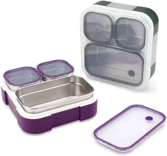 Stainless Steel Kids Lunch Box - 720ML Insulated Bento with Tableware & Bag, 3 Compartments, Leakproof, BPA-Free, Dishwasher Safe - Purple