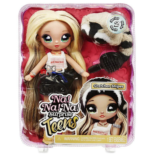 Na! Na! Na! Surprise Teens 11 inch Fashion Doll Gretchen Stripes, Soft, Poseable, Blonde Hair, Cute Animal-inspired Raccoon Hat Outfit & Accessories