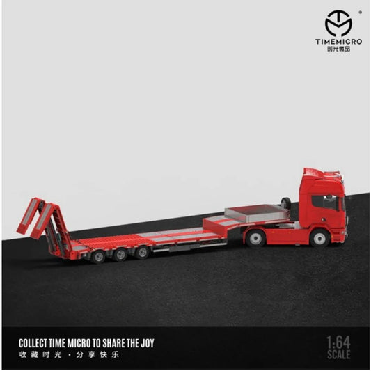 Time Micro 1:64 Scania Flatbed Transport Vehicle Diecast Model | Premium Metal Transporter with Display Base - Red