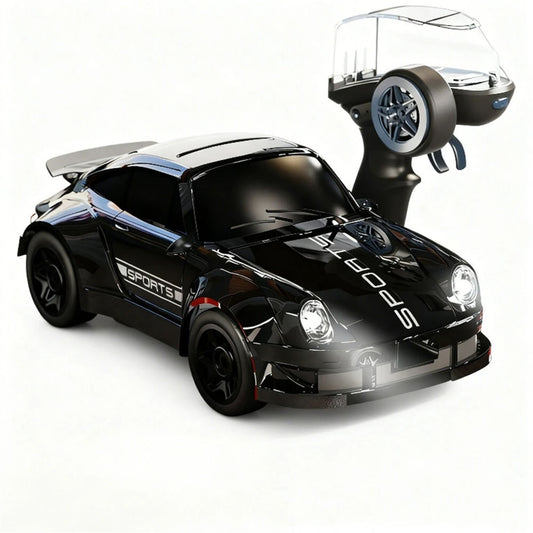 1:64 Scale 2.4GHz 4WD Drift RC Car with LED Lights | Mini High-Speed Racing Remote Control Car (Black)
