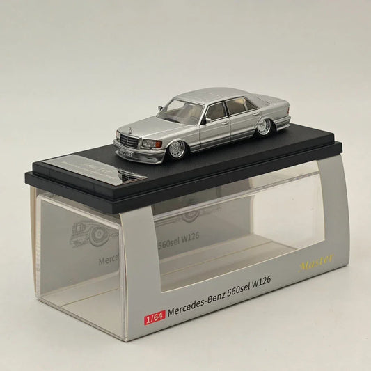 MASTER 1:64 MERCEDES BENZ 560SEL W126 Silver Diecast Car 6Gen Silver Low-Lung Edition MODEL