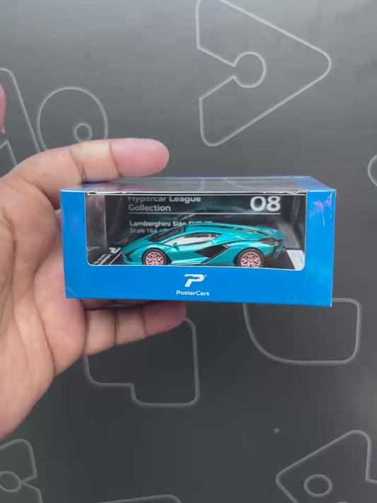 PosterCars 1:64 H08 – Lamborghini Sián FKP 37 (Blu Uranus) with Acrylic Box | Hypercar League Collection