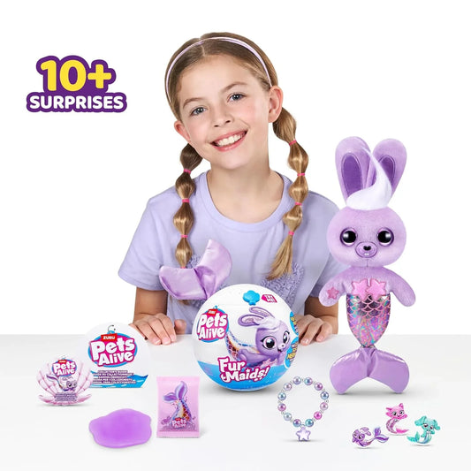 Pets Alive Furmaids by ZURU Mermaid Plush Interactive Light and Sound Girls Toy (Purple Rabbit)