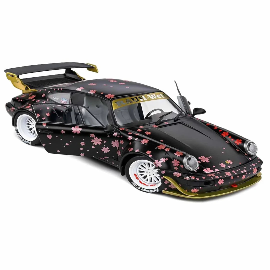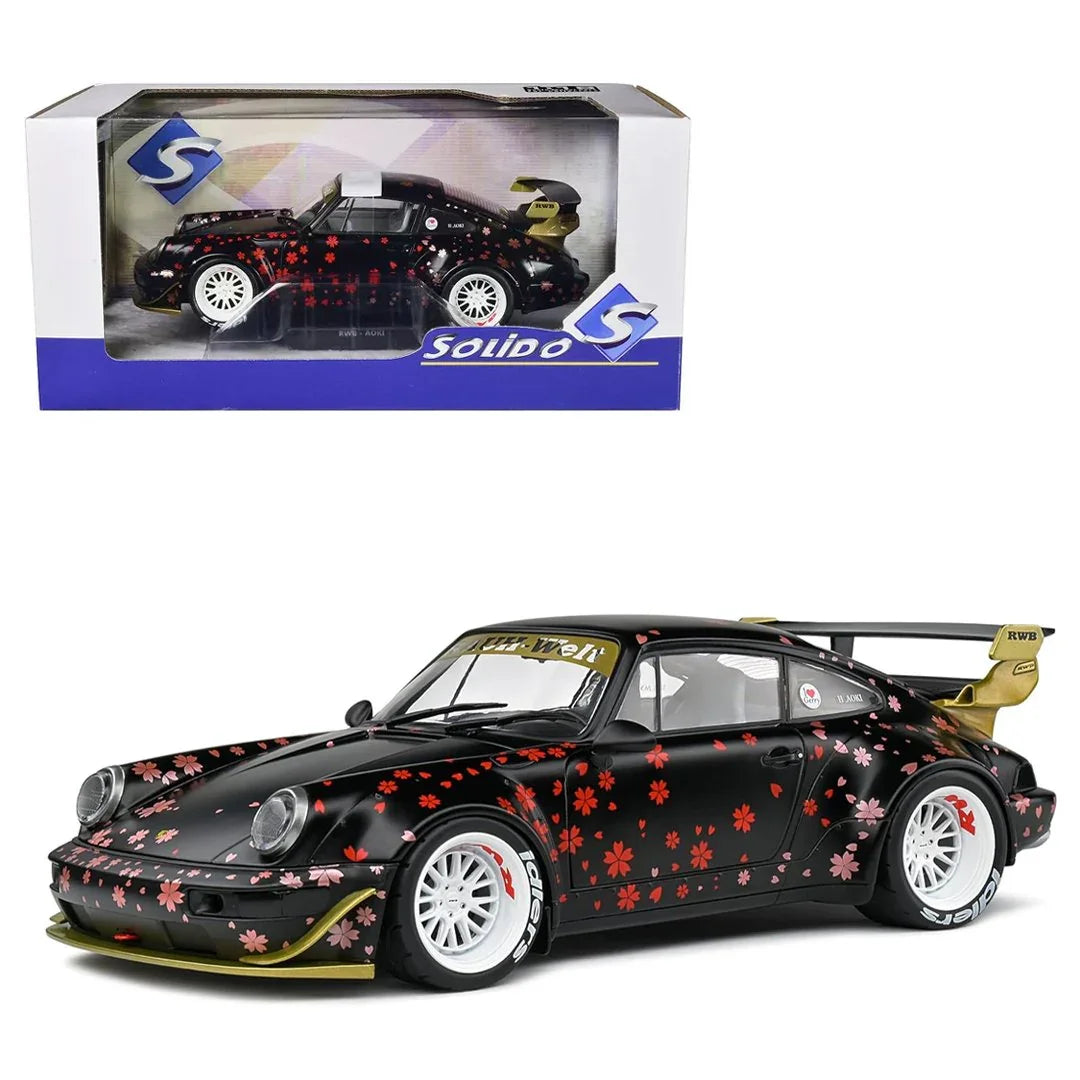 2021 RWB Aoki Matt Black with Cherry Blossom Graphics "Rauh WeltBegriff" 1/18 Diecast Model Car by Solido