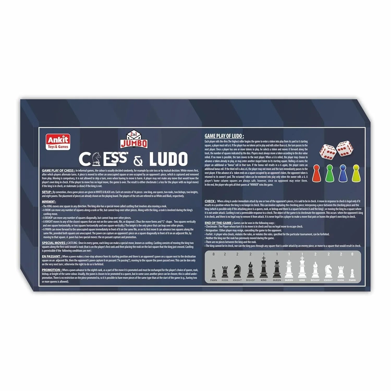 Ankit Toys 2-in-1 Chess & Ludo Jumbo Game Set – Foldable Double-Sided Board with Colourful Pawns for Kids & Adults