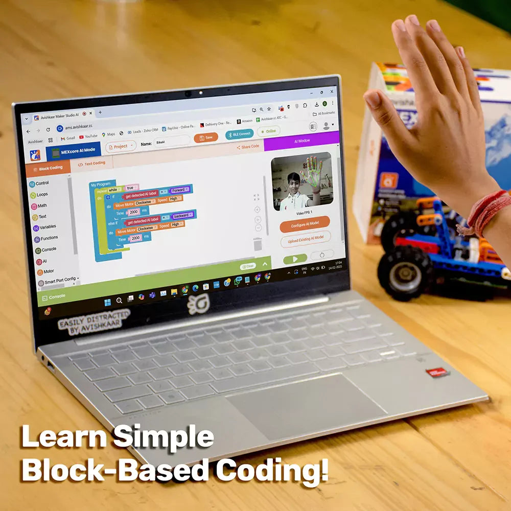 Control and code these models using the Avishkaar Maker Studio app, which offers features like remote control, sound effects, and simple block-based coding. The kit promotes learning in robotics, coding, mechanical design, and problem-solving through hands-on projects. With a 6-month warranty on all parts, the MEX Build-a-Bike Kit is an excellent educational tool and a perfect gift for budding engineers.