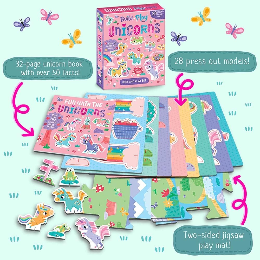 Build & Play Unicorns Book and Play Set | 28 Cardboard Models + 32-Page Activity Book + Double-Sided Play Mat