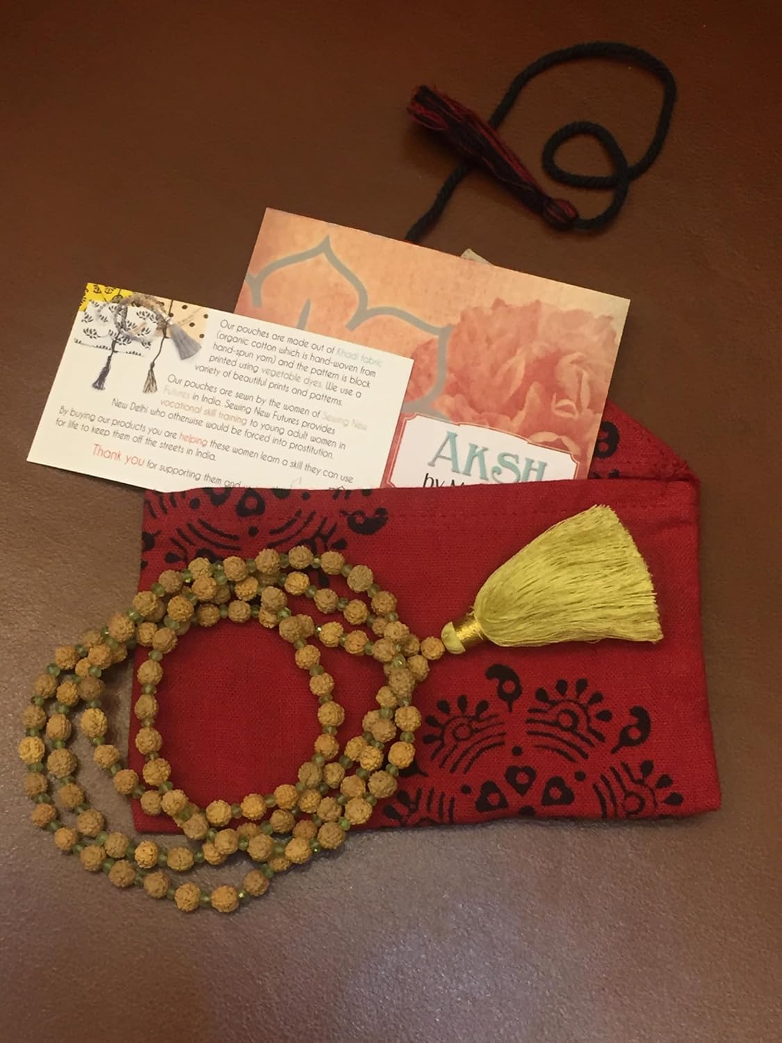 Handmade in India by skilled artisans, this mala comes with an organic cotton pouch, making it ideal for personal use or gifting to meditation, yoga, and spiritual practitioners.