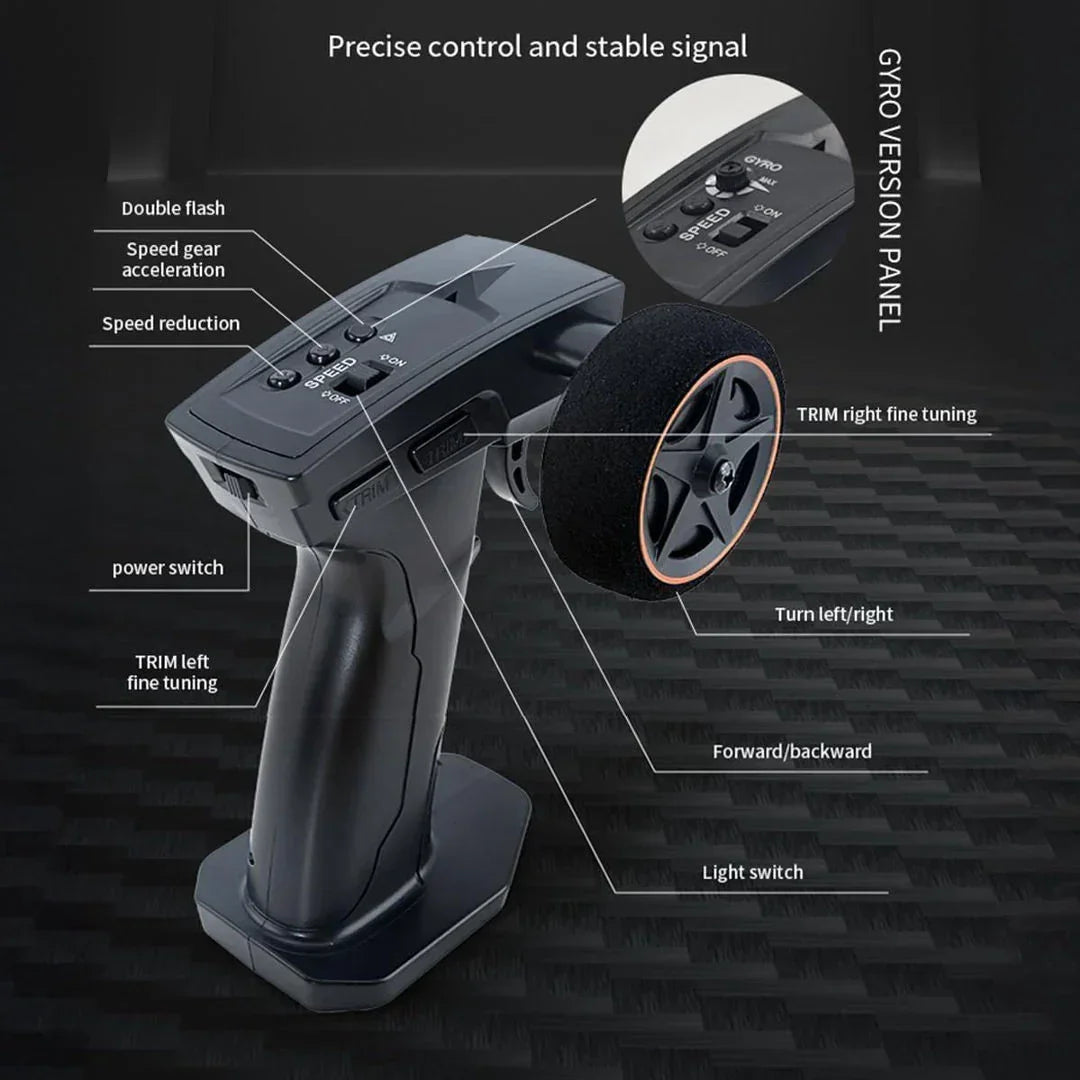 Equipped with 4WD, a built-in gyro system for stable drifting, and high-grip drift tires, this car is perfect for smooth slides, controlled turns, and freestyle driftingβright out of the box. Its durable chassis and responsive controls make it ideal for both indoor and outdoor fun.