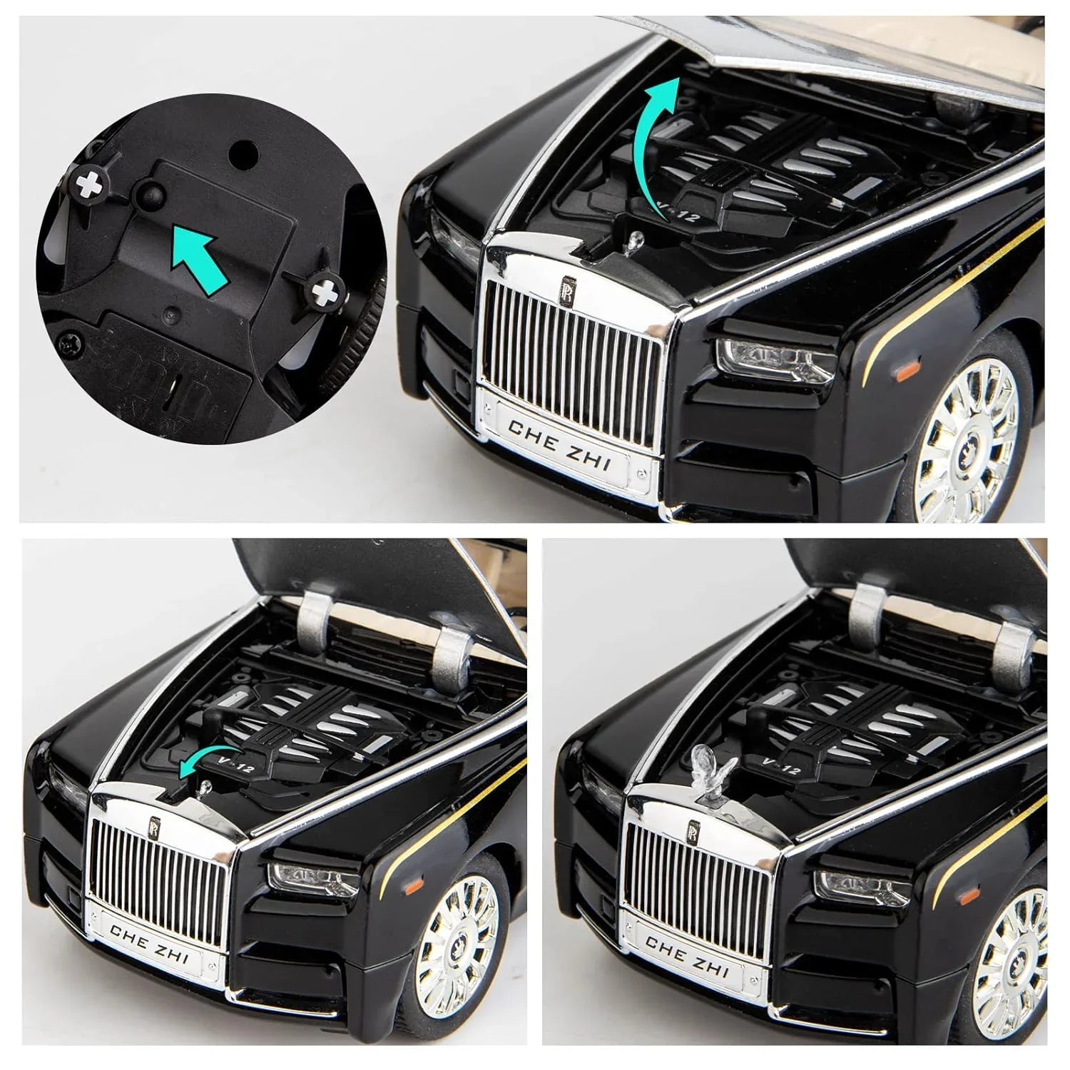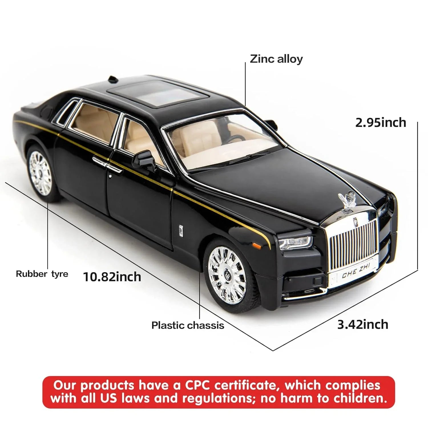 Che-ZHI 1:24 Scale Rolls-Royce Phantom Die-Cast Black Model with Lights and Sounds