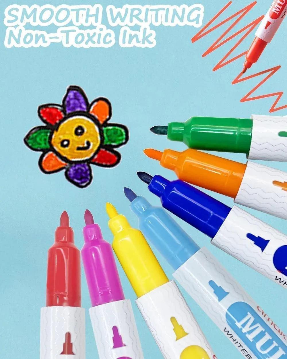 Unlock your creativity with this set of 12 vibrant colours, specially designed to bring your ideas to life on any whiteboard surface and on water surface. Each marker is crafted for smooth, consistent ink flow, ensuring bold lines and vivid colours that captivate attention.